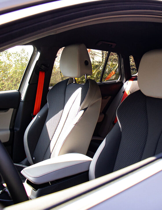 De nieuwe Škoda Elroq biedt een nog luxer interieur, met alle voordelen van digitalisering en connectiviteit. Dankzij de geavanceerde assistentiesystemen behoort hij tot de veiligste SUV’s in zijn klasse.