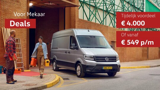 Daarom hebben we nu de Voor Mekaar Deals: scherpe acties waarmee je profiteert van tijdelijk voordeel op een nieuwe Volkswagen bedrijfswagen. En kies je voor een Volkswagen bedrijfswagen, dan kun je daarnaast altijd rekenen op onze uitstekende service, zodat jij je volledig kunt richten op wat écht belangrijk is voor jou. Bekijk snel alle Voor Mekaar Deals.